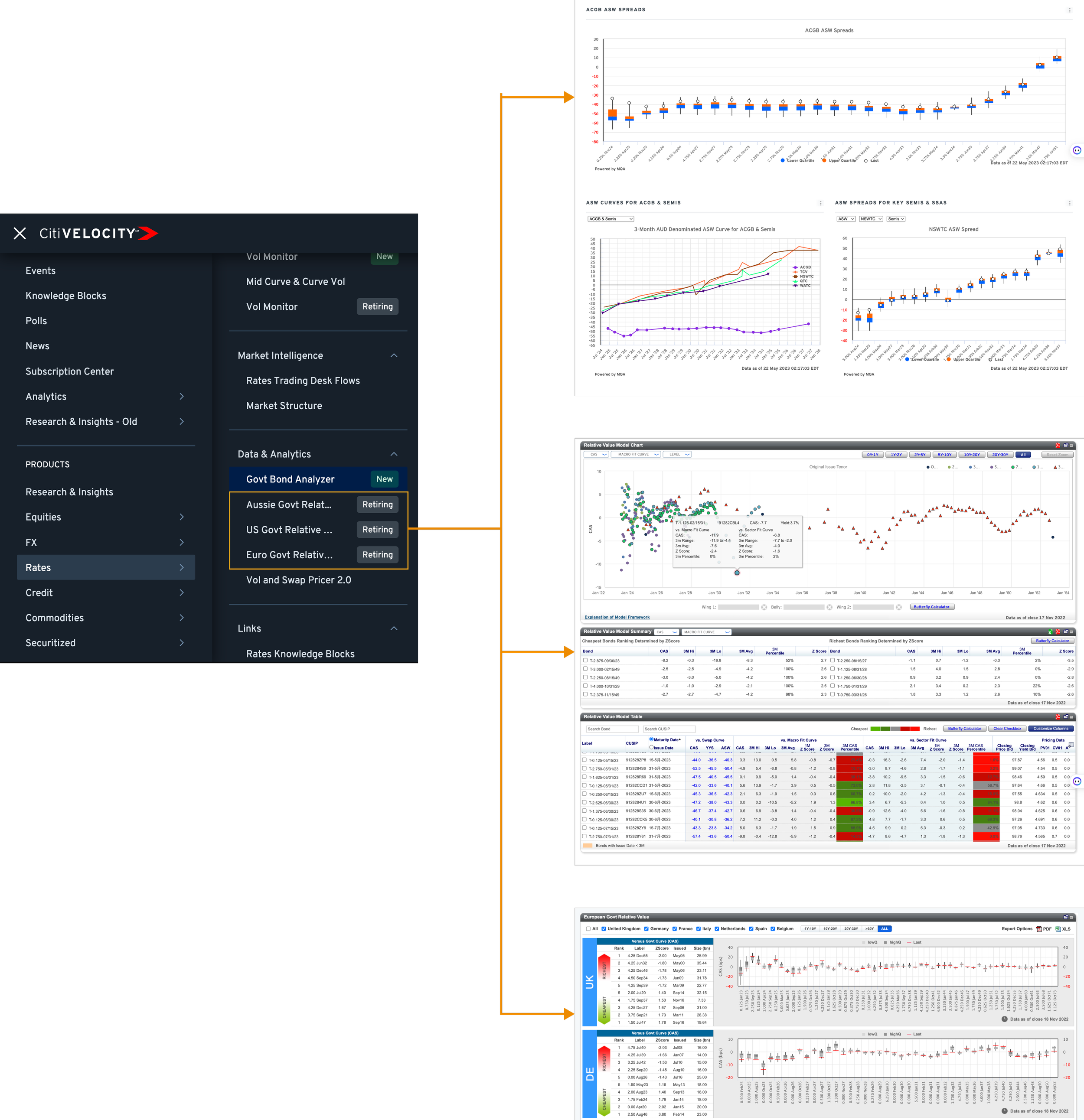 One such tool available to global institutional traders on CitiVelocity is the Govt Bond Analyzer, which provides a comprehensive data analysis service that covers both developed and emerging markets. It accomplishes this goal through the use of robust data visualization and professional calculation metrics, effectively interpreting exclusive market data. The project's main challenge is designing a user-friendly approach that caters to sophisticated business requirements while addressing the inherent complications associated with UX design.